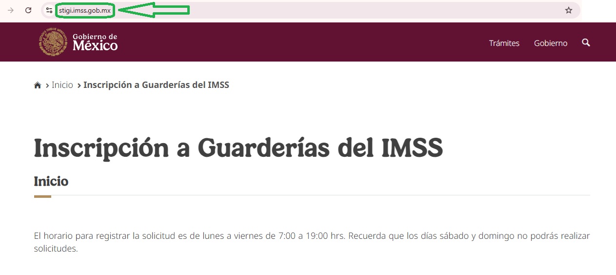 Accede al sistema de trámites STIGI del IMSS con tu número de seguridad social. Busca la opción de "Solicitud de Guardería" en el menú principal y selecciona nuestra guardería Piccolo Bambino de la lista de opciones disponibles.